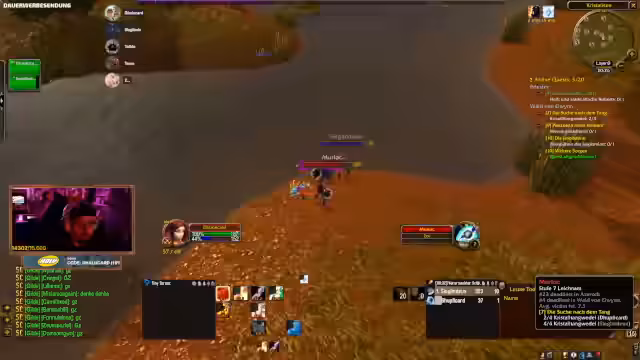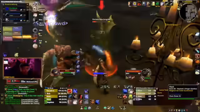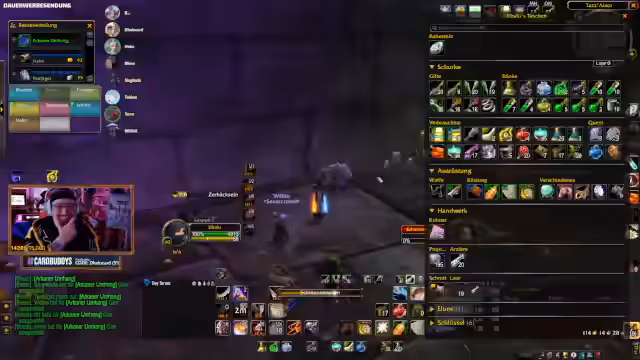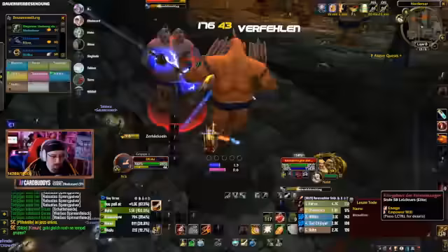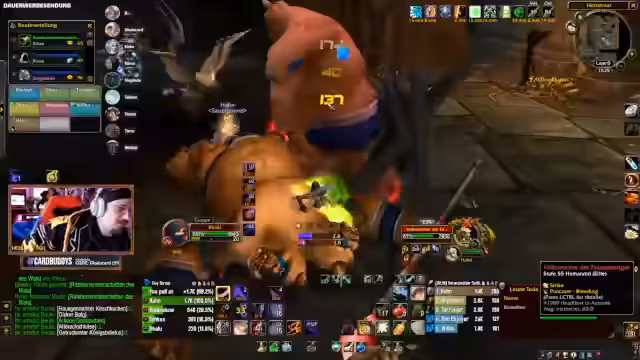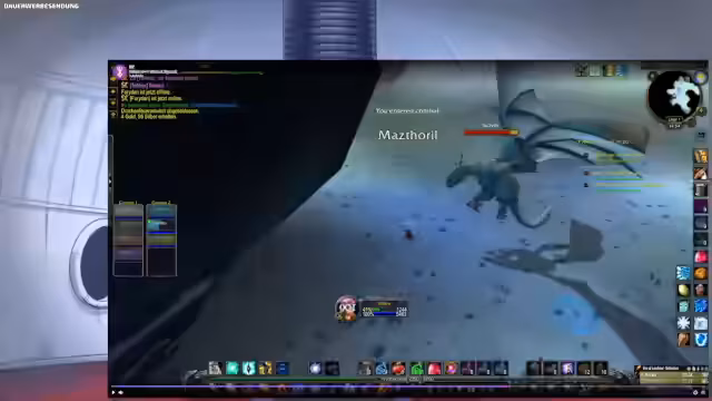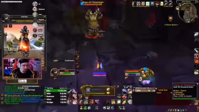 04:32:12Der Streamer startet einen Vollzug durch die Blackwing Lair (BWL). Dabei kommt es im Voice-Chat zu einer Reizüberflutung, weshalb einige Mitspiäter den Call verlassen. Im Spiel selbst wird der Rüstmeister als erstes Ziel eliminiert. Während des Kampfes kommt es zu einem Fehler, bei dem der Streamer nach dem Dracizat-Kampf feststellt, dass er die Anzeige für die Ressourcenbalken im Interface umstellen muss, um den Mana der Gruppe zu sehen.