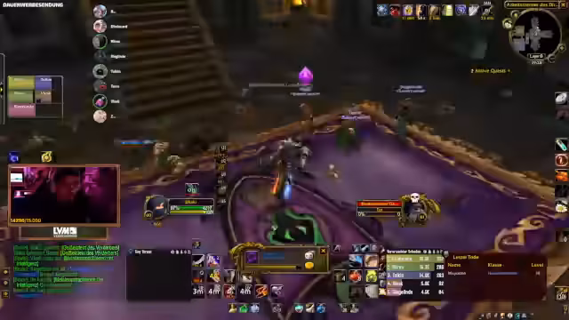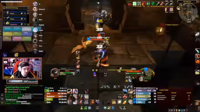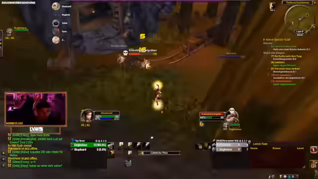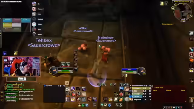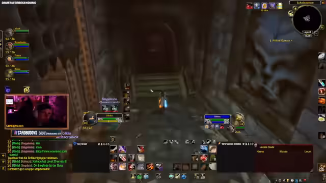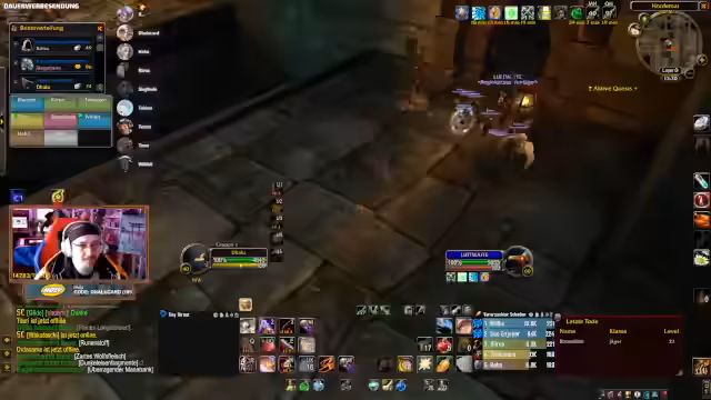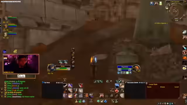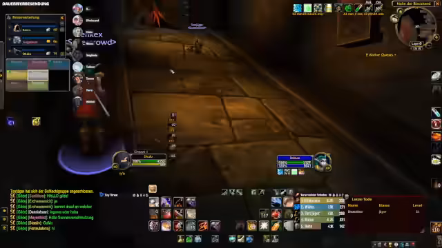 11:28:15Es werden die Vorteile und Nachteile von Twinken in World of Warcraft erörtert. Der Vorteil liegt darin, online zu sein und anderen Spielern helfen zu können, anstatt nur untätig herumzustehen. Der Nachteil ist der Zeitaufwand, einen Charakter aufzubauen. Es werden Anfragen von Spielern namens Kay, Baso und Tim Horus besprochen, die mit auf Level 25 genommen werden möchten, um zusammen Dungeons zu rennen. Die schlechte Kameraführung des Schattendungeon wird kritisiert und als anstrengend bezeichnet.