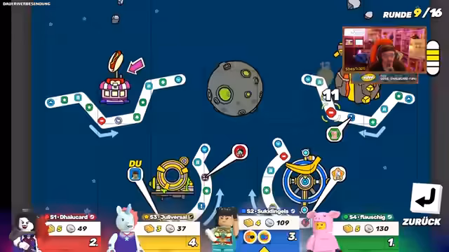 07:13:16Die Spieler führen eine Reihe von Minispielen durch, die unterschiedliche Fähigkeiten wie schnelles Drücken von Knöpfen, lotsen oder sammeln erfordern. Es kommt zu Spannungsmomenten, als einer der Spieler versehentlich verliert. Während des Spiels werden verschiedene Power-ups und Ereignisse wie das kostenlose Erhalten von Sternen oder das Verlieren von Münzen genutzt. Die Strategie der Spieler ist unterschiedlich: Einige versuchen gezielt zu gewinnen, während andere das Glück eine Rolle spielen lassen.