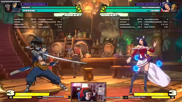 00:02:28Der Stream beginnt mit ersten Übungen an Combos, um Timing und Execution zu verbessern, wobei Echo im Fokus steht. Es wird erwähnt, dass der Sound aufgrund eines Windows Updates fehlte, was aber schnell behoben wird. Es folgen Überlegungen zum Ranked-Modus, wobei der Wunsch geäußert wird, mit Blitzcrank anzutreten, obwohl der Streamer sich noch nicht bereit fühlt. Die Motivation dahinter ist, durch Erfahrung besser zu werden, auch wenn es anfangs Niederlagen gibt. Es wird die Frage aufgeworfen, ob Ambitionen in dem Spiel bestehen, was bejaht wird, abhängig von der Unterstützung durch Riot. Der Streamer äußert seine Vorliebe für Kampfspiele und seine generelle Fan-Haltung dem Genre gegenüber. Dabei wird auch kurz auf das Spiel 'Blattern' eingegangen, welches aber keine aktive Spielerschaft mehr besitzt und somit keine Option darstellt. Es wird überlegt, ob das Spiel simpler als Tekken ist, was aber situationsabhängig betrachtet wird, je nachdem auf welchem Level man spielt. Es wird auch kurz Borderlands erwähnt.