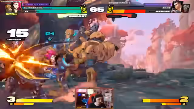 02:49:59Ein großer Teil des Streams wird der technischen Einrichtung und der Steuerung des Spiels gewidmet. Der Streamer wechselt von der Tastatur zum Controller und muss sich neu gewöhnen. Es wird die Verwendung von Fightsticks als Alternative erläutert, wobei Einsteigermodelle ab 60 Euro verfügbar sind. Die Steuerung ist komplex und erfordert viele Tasten. Es werden Probleme mit der Tastenbelegung diskutiert, insbesondere das unintuitive Springen mit 'oben' anstatt einer separaten Taste. Auch die Verwendung von Autokombos wird als nützlich für den Anfang angesehen, auch wenn sie nicht den maximalen Schaden erzeugen.