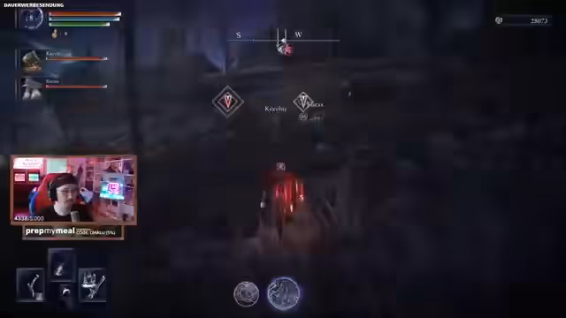 03:51:21Der Streamer spielt Elden Ring: Nightreign zusammen mit seinem Mitspieler Knechti. Sie planen, bestimmte Bosse zu besiegen und Gegenstände zu sammeln. Dabei wird über verschiedene Waffen, Fähigkeiten und Strategien diskutiert. Der Streamer zeigt sich mit dem Fortschritt im Spiel zufrieden und stellt Fragen zur Spielmechanik.