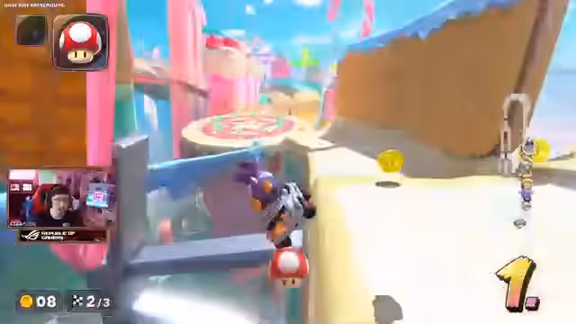 00:00:25Der Streamer startet mit Mario Kart World und sammelt P-Switches und Münzen auf der Strecke. Er beschäftigt sich mit den Herausforderungen der Collectibles-Suche und zeigt, dass die interaktive Map nicht alle versteckte Elemente anzeigt. Dabei versucht er, bestimmte Gebiete vollständig abzuschließen, bevor er weiterfährt. Er äußert Begeisterung für das Spiel und den Sammelpfad, trotz des langen Grinds.