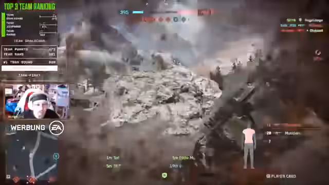 04:07:58Der Streamer befindet sich in einer intensiven Battlefield 6-Situation, die von ständigen Panzerangriffen und Feuersniper-Präsenzen geprägt ist. Er äußert seine Frustration über die unspielbare Situation, in der er ständig unter Beschuss steht und seine Killstreak nicht fortsetzen kann, da Gegner ständig über seine Position fahren. Der Streamer bittet sein Team, sich zu verlagern, da seine Position nicht mehr sicher ist und er nur durch eine taktische Verlagerung eine Chance hat, seine Missionen zu erfüllen.