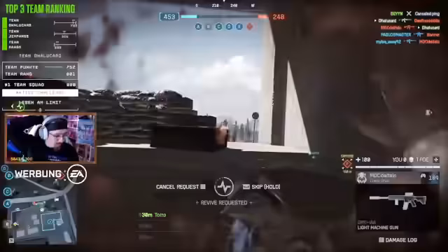 04:14:50Nach anfänglichen Rückschlägen gelingt es dem Team, durch gezieltes Countersnipping und koordinierte Angriffe, die Killstreaks zu steigern. Der Streamer erreicht beeindruckende 7 Kills, was als Teamerfolg gefeiert wird. Trotz des hohen Druckes und verlorener Tickets schaffen es die Streamer, das Spiel in einer engen Situation mit einem starken Team für sich zu entscheiden.