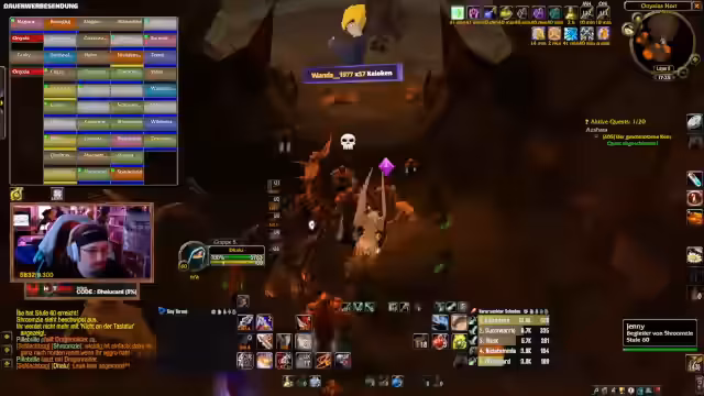 06:28:00Der Stream beginnt mit intensiven Kämpfen in einem World of Warcraft Raid. Der Streamer koordiniert seine Gruppe und gibt Anweisungen für den Kampf. Es geht um das gezielte Herbeiführen des Zaubers „Harn“ und das Management von Cooldowns, insbesondere bei 65 Prozent der Lebenspunkte der Gegner. Die Kommunikation ist schnelllebig und die Anweisungen sind präzise, um den Schaden zu maximieren und die Gruppe am Leben zu halten.