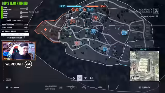 02:50:09Die Spieler kommunizieren aktiv über den Gegnernachschub und koordinieren ihre Spawnpunkte. Es wird darauf hingewiesen, dass Spawnpunkte nach jedem Benutzen neu gesetzt werden müssen, um strategische Vorteile zu sichern. Patrouillieren auf der Karte wird zur primären Methode, um Feinde zu finden, da bestimmte Bereiche wie totes Gebiet vermieden werden. Der Fokus liegt auf der Aufklärung und der gezielten Jagd auf Gegner.