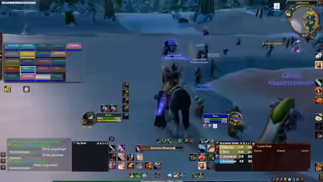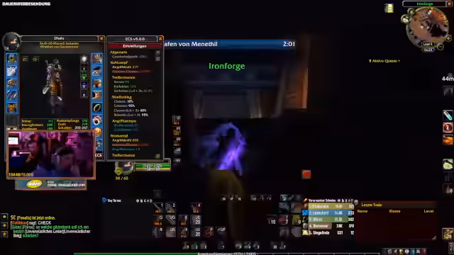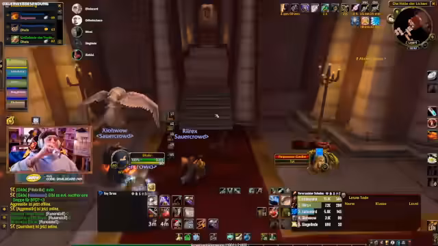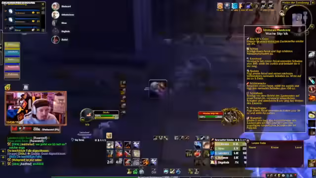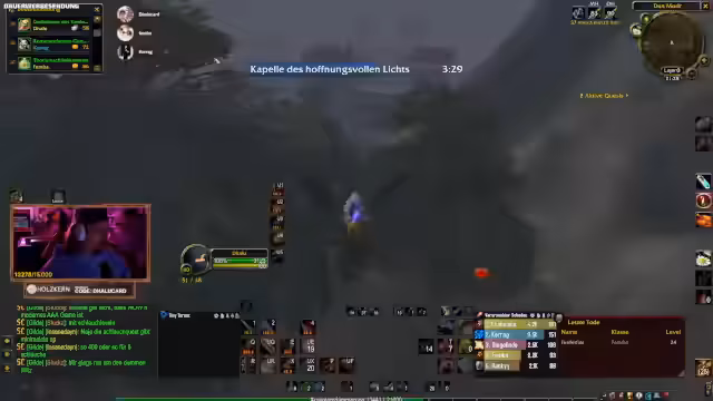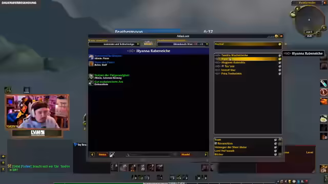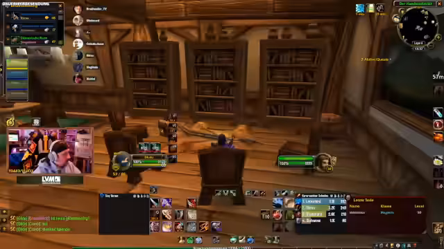 07:09:33Der Streamer wird aus seiner ursprünglichen Scholomance-Gruppe herausgeladen, was zu Verwirrung führt. Ein Spieler namens Bonjava Leon steigt ein und feiert Level 60. Währenddessen wird über die Verteilung eines seltenen Trinkets diskutiert. Der Streamer zeigt, wie man über das Guildmap-Addon die Gesundheitswerte von Gilde-Mitgliedern überwachen kann.