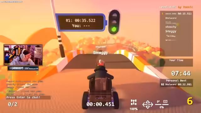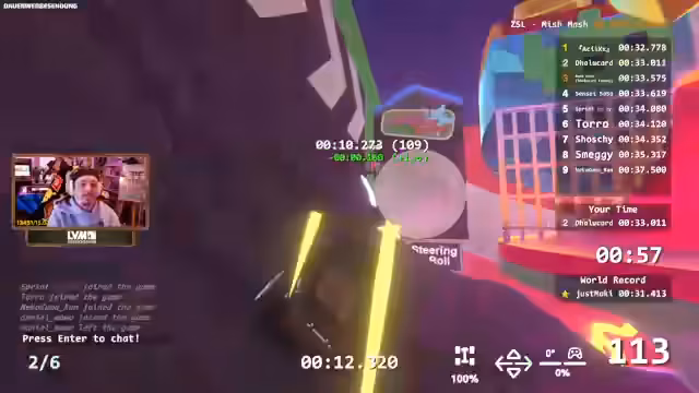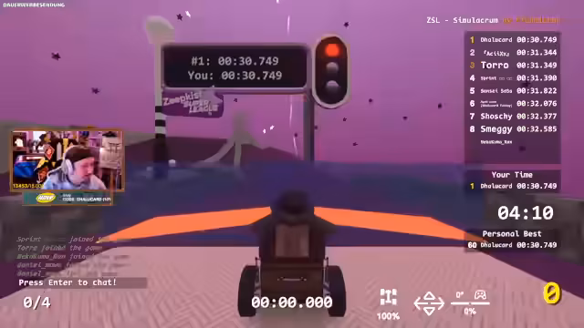 04:45:33Nach mehreren Versuchen wird eine Abkürzung auf der Map entdeckt, die einen erheblichen Zeitvorteil bietet. Der Drache auf der Strecke fungiert als Teleport ins Ziel, wenn man ihn richtig anfährt. Spieler Toro hat offenbar diesen Trick bereits gemeistert, was seine schnellen Zeiten erklärt. Andere Spieler können die Traktion des Drachen nicht für sich nutzen, was zu Frustration führt und die Suche nach weiteren Routen oder Optimierungen fortsetzt.