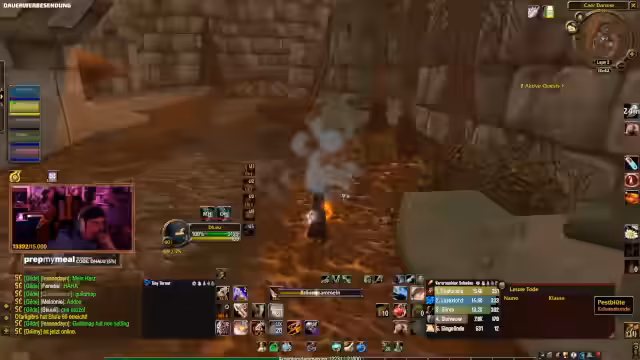10:30:09Die Gruppe ist in einem Bereich, in dem sie Ruf sammeln muss, wobei 7800 Ruf noch fehlen. Es wird über den Wert von Ausrüstungsdrops diskutiert und warum eine Kette mit Ausdauer für einen Krieger trotz niedrigerem Schaden besser sein kann. Für den anstehenden Kampf wird eine spezifische Taktik erläutert, bei der der Boss nicht mehr als 50% leben darf, um eine gefährliche Mechanik auszulösen.