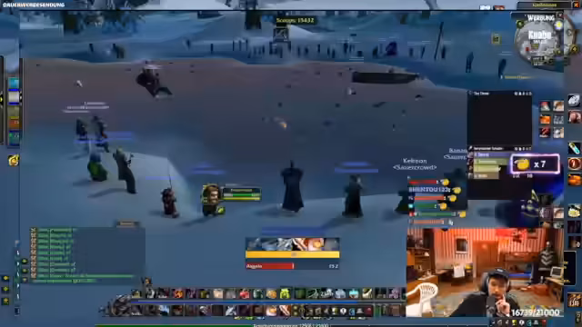 07:01:35Der Streamer erklärt, warum er Leon nicht im Dungeon tanken möchte, da er dessen Equipment für zu schwach hält. Die Gruppe zieht daraufhin mit einem anderen Tank. Es werden taktische Pull-Anweisungen gegeben, um gefährliche Adds mit Knockback-Fähigkeiten einzeln zu ziehen, um Verluste zu vermeiden. Der Streamer betont, darauf zu achten, nicht in die Abgründe zu fallen, und wie man die Adds so positioniert, dass man sie kontrollieren kann.