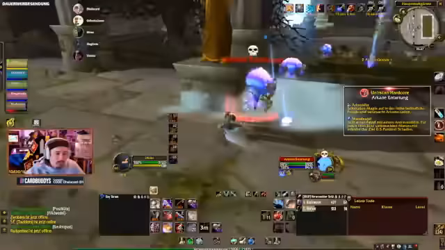 10:08:37Es wird über die Länge von Strattholm gesprochen und dass der Boss den Schaden parryt. Für den Kampf wird empfohlen, sich in einer Ecke gegen die Wand zu positionieren, um Shadowbolts zu vermeiden. Auch ein wichtiger Kampfmechanismus, die 'Gedankenübernahme', wird erklärt, bei der der Boss auf 50% Leben direkt getötet werden muss. Teamwork und das Timing von Cooldowns sind entscheidend.