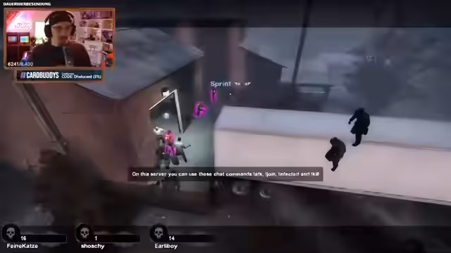 04:21:00Das Left4Dead 2-Versus-Match beginnt. Nach technischen Einrichtungsschwierigkeiten werden die Teams und Spielmodi bekannt gegeben. Es stellt sich heraus, dass das "Friendly Fire"-Setting nicht den Standardwerten entspricht und zu einem ungewöhnlich hohen Schaden durch Teammitglieder führt. Dies führt sofort zu ersten Problemen, als ein Spieler mit voller Lebenspunktzahl durch einen Schuss eines Teamkollegen augenblicklich stirbt. Streamer und Kommentator analysieren die serverseitigen Einstellungen, die die Spielbalance und das Erlebnis maßgeblich beeinflussen, und bemerken darüber hinaus, dass die Spawn-Bereiche für die Infected scheinbar vergröert sind.
