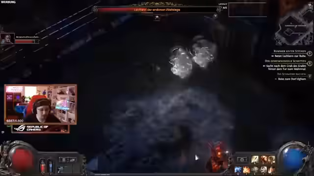 01:44:49Der Stream wechselt zu Path of Exile 2. Nachdem ein Streamer versehentlich auf das Hauptmenü-Portal geklickt ist, was in einem Hardcore-Spiel zum sofortigen Tod führt, gibt es massive technische Probleme. Die Serverlage ist instabil, was zu hohen Ping-Werten und extremen Lag-Spitzen führt. Die Streamer erkennen, dass die Probleme vom Server und nicht von ihrem PC stammen, was das gemeinsame Spielen unmöglich macht und zu einem unglücklichen, vermeidbaren Verlust führt.