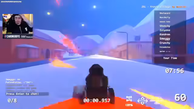 01:26:52Am siebten Tag des Weihnachts-LAN-Tags findet das Finale statt. Die Teilnehmer diskutieren intensiv die Rennstrecken, die als extrem herausfordernd und teils unfair bewertet werden. Besprochen werden Spielmechaniken wie Boost-Systeme, bei denen Farben (Grün/Gelb für Bonus, Rot für Strafe) und Pfeilrichtungen entscheidend für Punkte sind. Es gibt Kritik an der Streckengestaltung, wobei Abkürzungen und Sprünge als besonders schwierig beschrieben werden. Weihnachtswünsche werden ausgetauscht und humorvolle Erwähnungen von Pizzeria-Bestellungen mit speziellen Rabatten für technische Probleme gemacht.