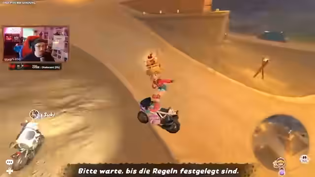 03:45:39Die Mario Kart Lobby wird fortgesetzt, die Stimmung bleibt angespannt und voller Action. Es kommt zuPositionsduellen und Teamgefechten am Ende des Rennens. Gleichzeitig wird der Stream Zombie gebeten, die nächste Lobby aufzumachen. Die Teilnehmer planen, noch ein K.O.-Turnier zu starten, da das gerade beendete Rennen kurzweilig war. Der Fokus liegt auf einem letzten spannenden Rennen vor dem eigentlichen Stream-Ende.