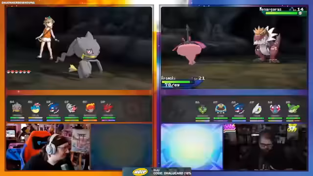 01:53:43Ein neuer Bereich des Streams konzentriert sich auf die Shiny-Jagd und unvorhergesehene Begegnungen. Der Streamer wartet darauf, dass sein Pokémon partner da ist, bevor er den Dialog fortsetzt. Er äußert seine Vorliebe für Shiny-Pokémon und hofft auf einen seltenen Fang. Bei einem Encounter mit einem Geowaz zeigt er sich überrascht und erkundet dessen Eigenschaften und Geschlecht. Er vergleicht die Pokémon mit Charakteren aus One Piece und teilt seine Gedanken über die Stärken und Schwächen der verschiedenen Pokémon.