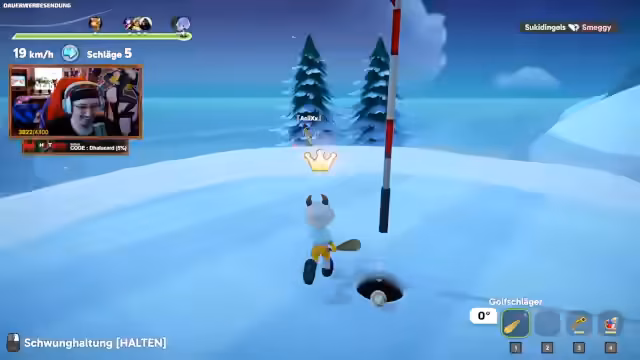 08:14:09Der Streamer organisiert ein Multiplayer-Event, das aufgrund von Organisationsproblemen und Pünktlichkeitsschwierigkeiten mancher Teilnehmer chaotisch verläuft. Es kommt zu PvP-Kämpfen im Golfspiel, wobei sich Spieler gegenseitig stören und Schilde nutzen. Die Teilnehmer zeigen viel emotionale Reaktion auf die chaotische Situation.