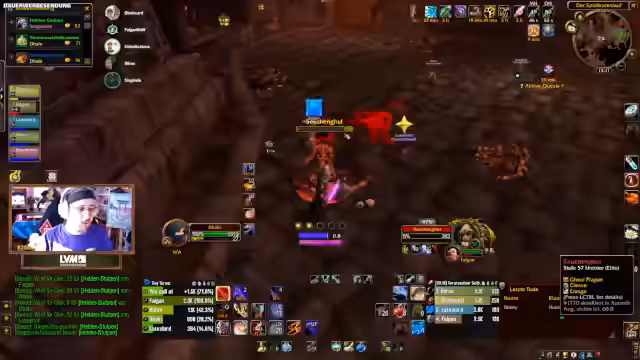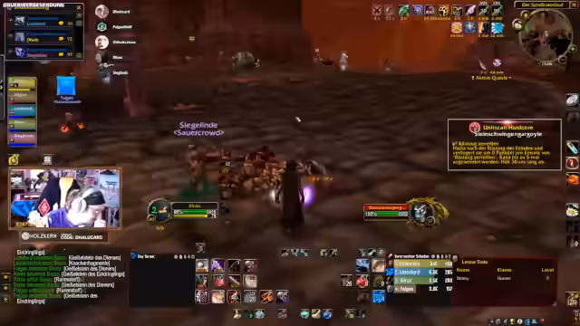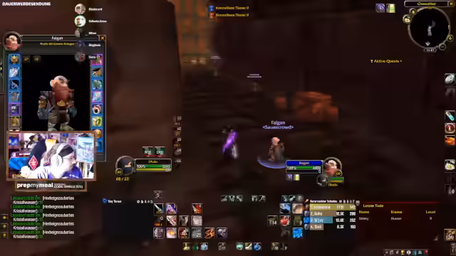 00:29:44Der Streamer unterbricht den Gaming-Flow, um über ein gescheitertes Rotkohl-Rezept zu sprechen, bei dem Apfel und Essig nicht den gewünschten Geschmack erzielen. Anschließend koordiniert er die nächste Gruppeneinheit für einen Dungeon-Run. Der primäre Fokus liegt auf dem Drops der begehrten Schurkenhose, wobei der Streamer rational die geringen Drop-Chancen durchrechnet und parallel Pläne für weitere Drops wie eines Mounts schmiedet.