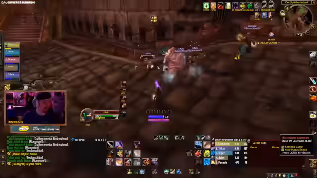 11:09:05Die Planung für den nächsten Tag steht im Fokus. Für einen geplanten Dungeon, Stradud, wird um 11 Uhr noch ein Healer gesucht, wobei die Gruppe noch unvollständig ist. Der Streamer erwähnt sein Mitwirken in einer 'dubiosen' anderen Gruppe, deren Identität er jedoch nicht preisgeben kann, um deren Anwesenheit nicht zu kompromittieren. Er betont, dass die genauen Pläne und beteiligten Personen noch unklar sind und spontane Entscheidungen getroffen werden müssen, während die allgemeine Begeisterung für gemeinsames Gameplay hoch bleibt.