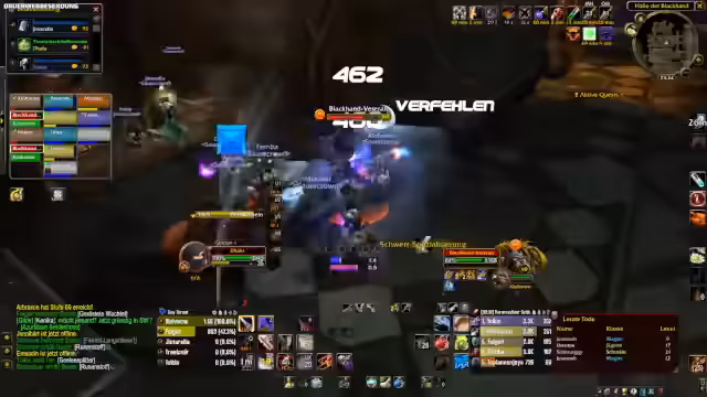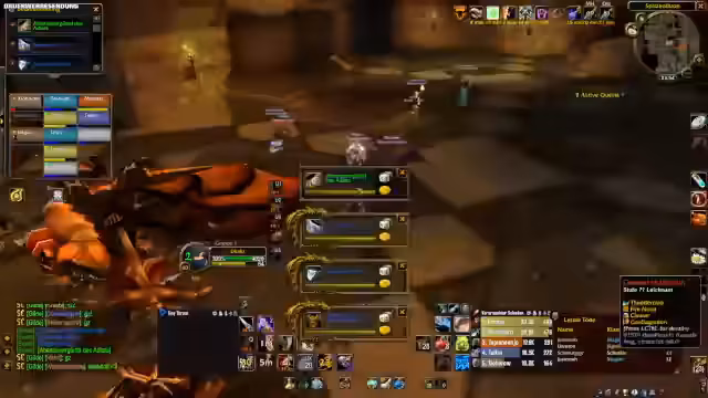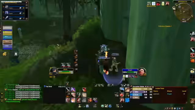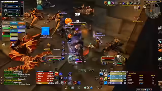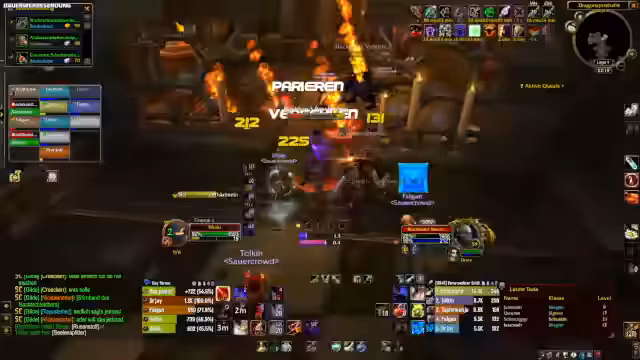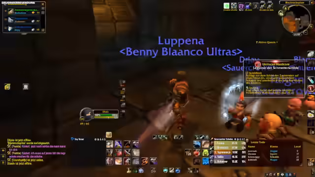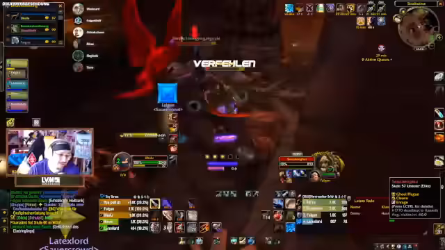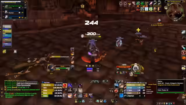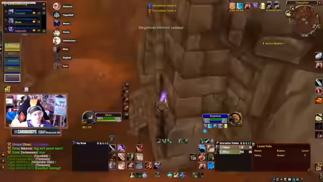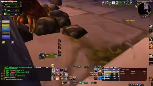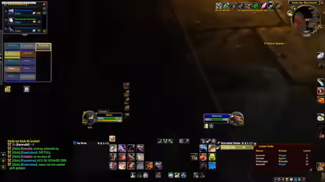 08:40:35Ein Spieler namens 'Leon' erleidet einen Disconnect, was den Fortschritt der Gruppe unterbricht. Die anderen Mitglieder der Gruppe halten den Boss, um Zeit zu gewinnen. Es wird über die Möglichkeit gesprochen, dass Leon, sobald er wieder verbunden ist, einzelne Packs 'kiten' kann. Ein Code-Wort wird eingeführt, damit die Gruppe sofort weiß, wenn ein Spieler offline geht, um Schäden zu vermeiden.