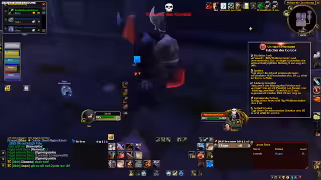12:07:27Nachdem die Handkanone gedroppt ist und ein Spieler sie erhalten hat, wird die Ausrüstung der Gruppe thematisiert. Ein wünschenswertes Lootziel ist die Schurkenbrustplatte. Anschließend erinnert sich der Streamer an den Bosskampf gegen den Champion der Geisel in UBRS und erklärt dessen Mechanik, insbesondere den Konflikt-Skill, der die Desorientierung von Spielern in der Nähe verursacht. Es wird betont, dass Tanks und DPS sich während dieses Skills voneinander fernhalten müssen, um Damage zu vermeiden.