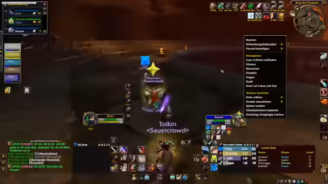10:33:13Ein Hauptaugenmerk liegt auf der detaillierten Planung für ein PvP-Event in einer Instanz. Es wird über die Klassenrollen gesprochen, insbesondere die potenzielle Gefährdung des Heilers durch Polymorph, und Lösungsansätze wie den Einsatz der Insignia of the Alliance diskutiert. Die Gruppe bereitet sich auf einen chaotischen PvP-Kampf vor, bei dem Koordination, das Nutzen von Crowd-Control und das Fokussieren von feindlichen Mobs, insbesondere dem schädlichen Hunter, entscheidend sind. Der Plan ist, den Boss 'Lefty' schnell zu eliminieren, um den Heiler entlasten zu können.