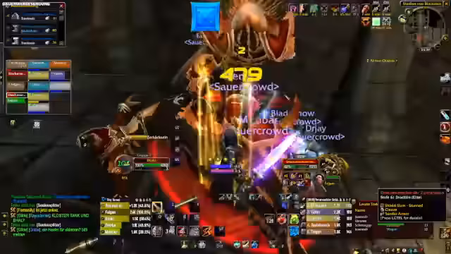 12:57:13Ein Spieler stellt eine technische Frage bezüglich einer Verzauberung für Handschuhe, der Streamer bietet an, dies zu erledigen. Anschließend konzentriert sich die Gruppe wieder auf den Bosskampf im Dungeon. Es gibt eine Verwirrung über die Position eines Assassinen, der noch am Leben sein könnte. Der Streamer übernimmt die Aggro und sorgt für Stabilität in der Gruppe, während der nächste Backpull bevorsteht und die Heiler aufmerksam gemacht werden, die Spieler zu heilen, die Schaden durch Blizzard nehmen.