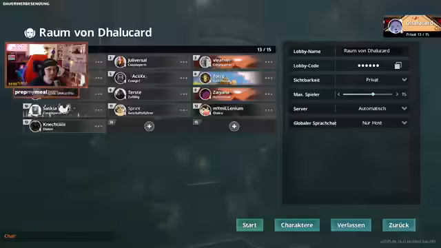 04:54:29Es wird angekündigt, dass eine private Lobby im Spiel KillerIn gestartet wird und Teilnehmer gesucht werden. Es wird versucht, die Teilnehmerzahl auf zehn zu begrenzen und geklärt, wer alles dabei ist oder absagen muss. Es wird über verschiedene Teilnehmer gesprochen, darunter Taro, Claire und andere, wobei es um ihre Fähigkeiten und ihre Teilnahme an vorherigen Challenges geht. Es wird erwähnt, dass einige Teilnehmer, wie Suki, aufgrund von Aktionen anderer abgesagt haben. Diskussionen entstehen über vergangene Ereignisse bei Lego Party, bei denen Regeln gebrochen wurden, was zu Unstimmigkeiten führte. Es wird versucht, die Audioeinstellungen der Teilnehmer zu optimieren, da einige zu leise sind oder das falsche Mikrofon verwenden. Es wird festgestellt, dass einige Teilnehmer, wie Maimel, oft zu spät kommen. Es wird über die Sprachchat-Einstellungen diskutiert und verschiedene Optionen wie 'Zum Reden drücken' ausprobiert.