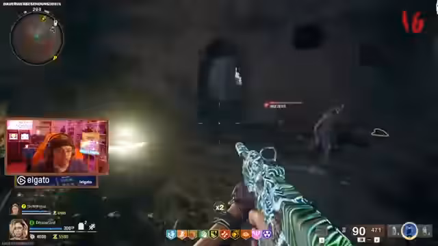 05:38:39Die Spieler diskutieren über grün leuchtende Schädel an der Wand, die Mapfallen darstellen. Im Spawnraum marschiert ein Pack-A-Punch, der zuvor in einer dicken Kiste versteckt war. Ein Elektro-Mimik spawnt erneut, und die Spieler vermuten, dass er noch eine weitere Funktion hat. Es wird spekuliert, dass der Elektro-Mimik etwas Strombetriebenes ansteuern kann, da Funksprüche und Rauschen zu hören sind. Die Spieler suchen nach dem Elektroamalgam und stellen fest, dass es immer an derselben Stelle brutzelt. Sie überlegen, was die Wandmalerei ihnen sagen soll und wo der Elektro-Mimik hingebracht werden muss. Der Streamer vermutet, dass sich der Elektro-Mimik in einem der Objekte versteckt hat und nun chillt. Er entdeckt leuchtende Symbole an der Wand und vermutet, dass es ein Muster gibt, das in jedem Raum vorhanden sein muss.