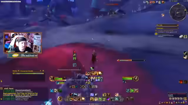 01:17:09Während des Streams treten anhaltende Disconnect-Probleme auf, was den Gameplay-Flow stört und die Frustration des Streamers erhöht. Der Streamer erkundet das erste Gebiet in World of Warcraft Midnight, obwohl er den Eintritt ins Gebiet als merkwürdig beschreibt. Er äußert den Wunsch, Karazhan am Sonntag mit zehn Spielern zu raiden, und stellt Fragen zur Funktionsweise von Pets, insbesondere ob diese noch Talentbäume besitzen oder nur per Spezialisierung geändert werden können.