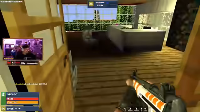 08:48:40Die Runden in Trouble in Terrorist Town verlaufen äußerst chaotisch und von gegenseitigen Schüssen und Missverständnissen geprägt. Spieler feuern wahllos aufeinander, oft ohne die genaue Identität des Gegners zu kennen. Es kommt zu mehreren Tötungen, bei denen sich die Beteiligten gegenseitig beschuldigen, der Verräter (Traitor) zu sein. Die Situation wird unübersichtlich, da sich Spieler in Dachhäusern verstecken, Fallen stellen und sich mit unkonventionellen Waffen wie Granaten oder Bögen bekämpfen, was zu unvorhersehbaren Ergebnissen führt.