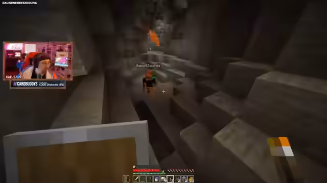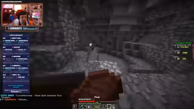 03:34:15Der Streamer sucht in einer großen Mine nach Diamanten und ist von Monstern umgeben. Es kommt zu mehreren gefährlichen Kämpfen, darunter gegen Spinnen, die von der Decke herabhängen, einen Zombie-Dorfbewohner und mehrere Creeper. Dabei geht es hauptsächlich um das Überleben, das Management der Inventare und das Auffinden wertvoller Ressourcen, insbesondere Diamanten, während die Gefahr durch die unübersichtliche Umgebung und die Aggression der Monster stetig wächst.