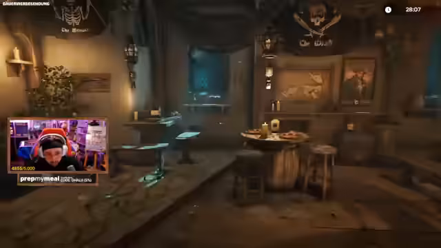 02:54:02Die Spieler kämpfen mit der Zuordnung der Gerichte zu den Tischen, da die Symbole auf den Tellern und den Tischen übereinstimmen müssen. Es kommt zu Verwirrungen, da der Streamer versehentlich Pilze isst, was die Portionen verkleinert und die Lösung des Rätsels erschwert. Es wird diskutiert, ob das Essen der Gerichte relevant ist oder ob es sich um einen Bug handelt, da der Text besagt, dass jedes Gericht auf dem dafür vorgesehenen Teller serviert werden muss. Sie beschließen, die Teller einfach richtig zu platzieren, auch wenn der Text dann falsch wäre. Nach weiteren Anpassungen der Tellerzuordnung scheint das Rätsel der Tische gelöst zu sein. Anschließend widmen sie sich den Piraten-Rätseln, bei denen Bilder den jeweiligen Piraten zugeordnet werden müssen. Sie identifizieren Ricky, John (wegen seines Säbels) und Sir Henry (wegen seines Goldes und des Teufels auf seiner Flagge). Es gibt Verwirrung bei der Zuordnung von Titeln wie 'The Menace' und 'The Wraith'. Ricky's Tagebucheintrag gibt Hinweise auf seine Reise. Sie entdecken auch beliebte Drinks, benannt nach lokalen Legenden, die bei der Identifizierung von Jack the Snake helfen. Die Spieler versuchen, die verbleibenden Piraten wie Ricky und Henry The Menace zuzuordnen, wobei sie Hinweise wie Pistolen und Säbel verwenden. Es wird ein Rätsel mit drehbaren Scheiben gelöst, das Norden, Osten, Süden und Westen darstellt, und ein Schlüssel gefunden.