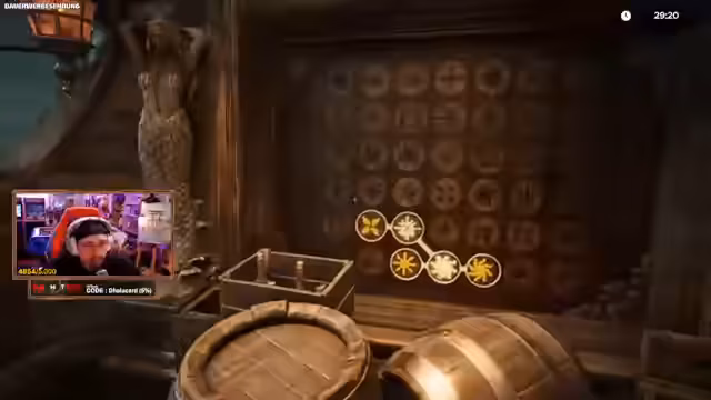 04:21:51Die ersten Minuten des Streams widmen sich einem komplexen Rätsel mit Leuchttürmen und einem Puzzel aus Buchstaben. Streamer und Flauschi diskutieren intensiv über die korrekte Ausrichtung der Laterne und die richtige Position, um die Buchstaben Y, A, S, V, F, X durch die Löcher zu bekommen. Nach mehreren gescheiterten Versuchen und einem frustrierenden Zoom-Problem finden sie schließlich die Lösung, indem sie den Fixpunkt S und A identifizieren. Anschließend entdecken sie eine Karte mit Schlüsselpositionen, die sie auf einer Karte zuordnen müssen. Schließlich finden sie eine weitere Karte, die sie auf eine Schatzjagd führt, bei der sie ein Schiff steuern müssen, um Leuchttürme zu passieren und einem Geisterschiff zu folgen.