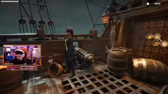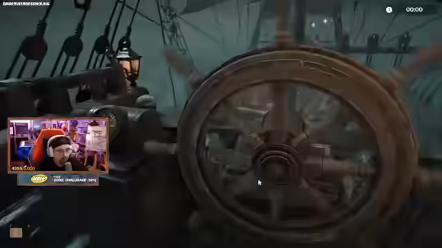 04:33:17Nachdem sie das Rätsel gelöst haben, gelangen die Spieler auf ein verfluchtes Schiff. Das Ziel ist es, den Schatz zu finden, indem sie den Steuerhebel reparieren und die Segel setzen. Währenddessen tauchen mehrere Hinweise auf, wie 'folge den Zeichen' und 'Richtung Norden'. Die Spieler müssen das Schiff ausrichten, an den Leuchttürmen vorbeifahren und sich dabei orientieren. Ein technischer Fehler führt dazu, dass ein Hebel über Bord geworfen wird, was den Fortschritt zunächst blockiert. Schließlich läuten sie eine Glocke, was das Schiff weiterbewegt und sie zu einem Geisterschiff führt, das sie angreifen können.