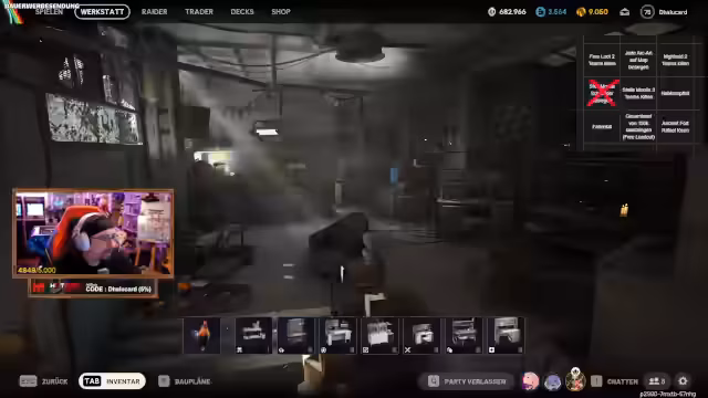 06:30:34Nach der letzten Runde treten unerwartete Inventarprobleme auf: Das Lager ist überfüllt, angeblich durch Free Loot aus abgebrochenen Runden, der ins Inventar verschoben wurde. Es müssen 20 Felder geleert werden, was als frustrierend empfunden wird, da der Spieler Schwierigkeiten hat, lila Gegenstände zu verkaufen, da er den Wert und die zukünftige Notwendigkeit nicht einschätzen kann. Die Angst, wichtige Gegenstände für zukünftige Workbench-Upgrades zu verkaufen, ist groß. Nach dem Verkauf einiger Gegenstände und einer Erweiterung des Stashs ist wieder Platz vorhanden. Der Plan ist nun, erneut in eine Runde zu gehen, um 150k Loot zu sammeln. Die Spieler landen in Stella Montes, einer Map, die als 'Gamble' gilt, da man entweder viel Loot finden oder im PvP kämpfen muss, wenn man spät spawnt. Eine spezifische Loot-Route wird besprochen, um schnell Geld zu machen, indem Schränke und der 'Money-Raum' geplündert werden, wo bis zu drei Epics gefunden werden können. Die Strategie ist, ein Team zu finden, das nicht viel Loot hat, es zu eliminieren und dann den Loot zu sichern.