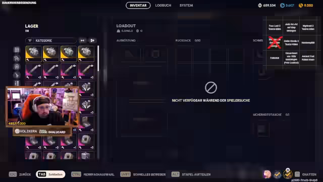 Inventarprobleme und erneuter Versuch für 150k Loot