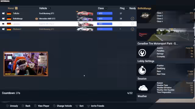 01:12:16Die Teilnehmer des Streams stehen vor der Herausforderung, ein Multiplayer-Rennen in GT3-Fahrzeugen zu starten, wobei wiederholt Verbindungsprobleme auftreten. Trotz mehrfacher Versuche, Lobbys zu erstellen und beizutreten, scheinen technische Schwierigkeiten die Spieler daran zu hindern, gemeinsam zu starten. Nach einigen Anläufen gelingt es schließlich, eine Lobby zu bilden, in der die Wahl auf den Mercedes AMG GT fällt. Die Diskussion dreht sich um die Zugänglichkeit und den Schwierigkeitsgrad des Spiels, wobei Fahrhilfen aktiviert werden, um das Erlebnis zu erleichtern. Es wird beschlossen, mit aktiviertem Schaden zu spielen, um eine authentischere Rennerfahrung zu gewährleisten. Die Spieler wählen ihre Fahrzeuge, darunter ein lila-blauer Mercedes und ein Audi R8, und bereiten sich auf das Rennen vor, wobei die anfänglichen Verbindungsschwierigkeiten eine erste Hürde darstellen.