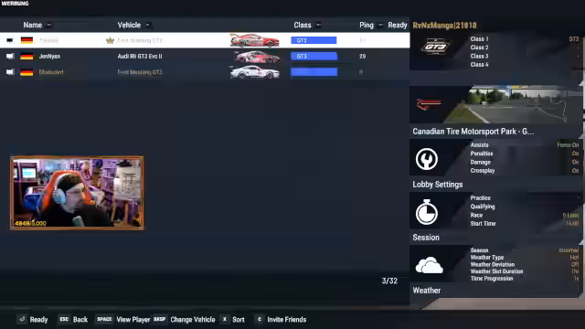 00:38:42Nachdem der Bau im Minecraft-Moment unterbrochen wurde, wechselt der Stream zu dem titel Project Motor Racing. Er erläutert die Erwartungen an das Spiel, da es als sehr beliebter Sim-Racer gilt. Nach anfänglichen technischen Problemen mit der Lobby-Erstellung und Controller-Konfiguration gelingt es, eine private Lobby mit den Zuschauern Mango und Dalu einzurichten. Sie entscheiden sich für die MX-5 Trophy-Klasse und vereinbaren ein Rennen mit aktivierten Kollisions- und Strafsystemen, um das Rennserium authentisch zu gestalten. Das erste Rennen wird aufgrund von Startproblemen und Vorfällen auf der Strecke vorzeitig abgebrochen.