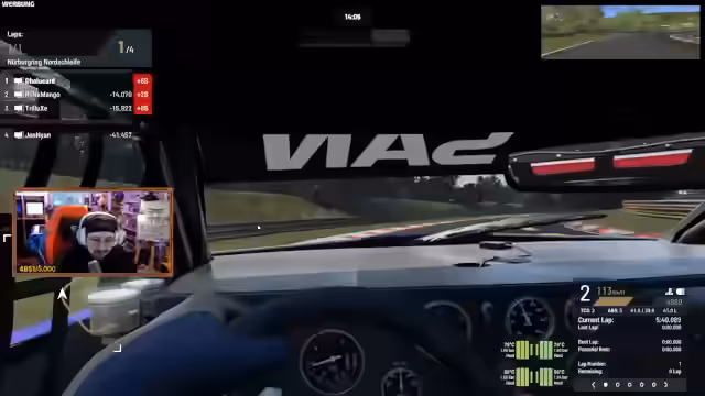 01:38:44Das Rennen auf der Nürburgring-Nordschleife erweist sich als extrem anspruchsvoll, wobei die Spieler von Anfang an mit schwierigen Kurven und unübersichtlichen Passagen kämpfen. Ein Spieler bemerkt einen starken Linksdrall am Fahrzeug und hat Schwierigkeiten, die Kontrolle zu behalten. Trotz der Konzentration und des Versuchs, vorsichtig zu fahren, kommt es zu weiteren Crashes und technischen Problemen, darunter ein Spielabsturz bei einem der Teilnehmer. Die Spieler diskutieren über die Schwierigkeit der Strecke und die Auswirkungen der Fahrzeugschäden, die das Fahren zusätzlich erschweren. Trotz der Rückschläge und der Frustration über die technischen Probleme bleibt der Wunsch bestehen, das Rennen fortzusetzen und die Nordschleife zu bezwingen. Es wird überlegt, ob ein Wechsel zu einer einfacheren Strecke wie dem Lime Rock Park sinnvoll wäre, um ein reibungsloseres Rennerlebnis zu ermöglichen.