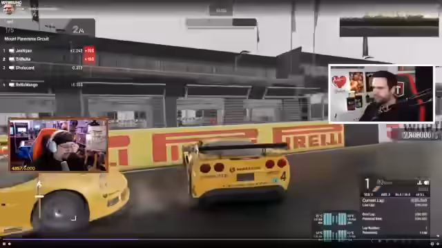 01:00:09Das erste Rennen in Project Motor Racing beginnt chaotisch. Trotz der Deaktivierung von Strafen und Schäden kommt es zu zahlreichen Unfällen und Fahrfehlern. Der Sound des Spiels ist sehr laut und muss angepasst werden. Die Spieler haben Schwierigkeiten mit den Kurven und dem manuellen Schalten, wobei das versehentliche Einlegen des Rückwärtsgangs als größte Katastrophe im Spiel bezeichnet wird. Internetprobleme und PC-Abstürze bei Jen tragen zusätzlich zum Durcheinander bei. Es wird deutlich, dass ein realistischeres Fahrerlebnis mit aktivierten Strafen und Schäden gewünscht wird, um ein seriöseres und vorsichtigeres Fahren zu fördern. Die Hilfssysteme sollen ebenfalls aktiviert werden. Der Streamer muss eine neue Lobby erstellen, um die Cup-Kategorie zu ändern und andere Autos wie alte Porsche Trophy, GT-Autos, GT4, 70er Sportwagen, GTO, neue Porsche, GT3, GT1 oder Group C auszuwählen. Die Spieler freuen sich auf ein ernsthafteres und herausfordernderes Rennerlebnis mit diesen Anpassungen.