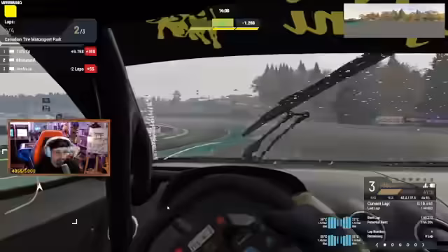 02:29:34Der Streamer kämpft mit seinem Auto im Rennspiel, kann nicht geradeaus fahren und muss das Rennen abbrechen, da es unmöglich ist, anzufahren. Er beklagt sich über die Schwierigkeit und eine 'lahme Hand'. Es wird festgestellt, dass das Aquaplaning dreimal schlimmer ist als zuvor, was zu einem Rechtsdrall führt. Trotz der Schwierigkeiten wird diskutiert, ob der letzte Sieg zählt oder ob ein weiteres Rennen ohne Regen nötig ist. Die Zuschauer sollen entscheiden, aber ein weiterer Crash im nächsten Spiel wird befürchtet. Es gibt auch Diskussionen über Schummeln und Abkürzungen im Spiel, insbesondere über die Verwendung eines 'Mauscrashers' am Lenkrad, was der Chat als unerträglich empfindet. Der Streamer versucht, sich zu konzentrieren und zu gewinnen, während er sich über die Mausbeschädigung am Lenkrad wundert. Es wird ein Penalty von vier Sekunden erwähnt, und der Streamer hat das Gefühl, keine Kontrolle über die Strecke zu haben, fährt nur mit halbem Gas im Lenkhaus, was aber immer noch besser ist als die Leistung des Mitspielers. Das letzte Rennen entscheidet über den Ausgang, und es wird festgestellt, dass die Strecke bei Regen sehr rutschig ist, aber die Regenrennen, in denen ernsthaft gespielt wurde, waren gut.