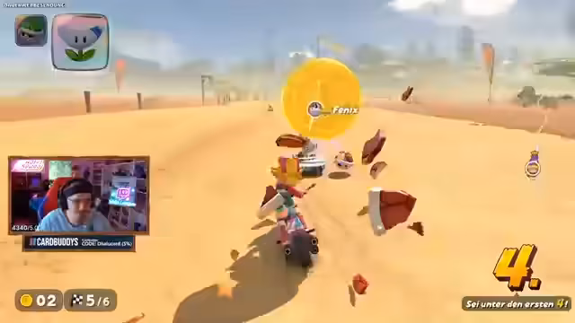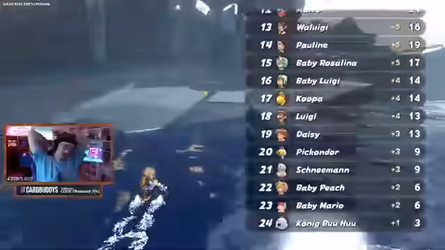 04:49:48Das Stream beginnt mit einer intensiven Mario Kart World Lobby, in der der Spieler nach anfänglichen Rückschlägen einen beeindruckenden Manöver vollführt. Mit einem Maxi-Pilz überfährt er mehrere Gegner auf einmal, was er selbst als 'überfies' beschreibt. Es folgt ein Gespräch über das Gameplay, die Notwendigkeit von Punkten und der Strategie, sich auf Lakitu zu konzentrieren. Der Streamer nutzt auch Support-Items, um mit Münzen seine Mitspieler zu versorgen, während er versucht, den führenden Spieler 'Lucky' aufzuholen.