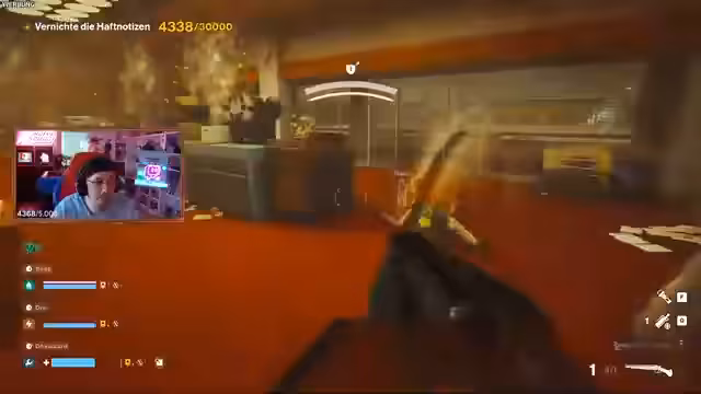 06:13:11Für die nächste Runde wird eine neue Map gespielt, die im Stil von 'Control' gestaltet ist und mit Post-its übersät ist. Dieses Gimmick prägt das Gameplay, da die Post-its das Sichtfeld der Spieler blockieren und 'Vaso' mit seinem Spülkit sie abwaschen muss. Das Missionziel ändert sich dynamisch und verlangt von den Spielern, diese 'Haftung' zu vernichten, was das Gameplay unerwartet und humorvoll gestaltet.