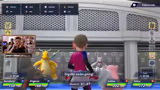 03:06:44Die Kämpfe beginnen und werden live von den Teilnehmern und Zuschauern beobachtet. Streamer analysieren jeden Zug und kommentieren die Entscheidungen der Gegner. Es entstehen taktische Manöver, wie das Einsetzen von Rückenwind und das Ausnutzen von Schwächen der gegnerischen Pokémon. Streamer reagieren auf unerwartete Entwicklungen während der Kämpfe, wie den plötzlichen Ausfall wichtiger Pokémon oder das Überleben erwarteter Niederlagen. Die Spannung steigt, als die Teilnehmer gezwungen sind, ihre Strategien anzupassen und schnell auf wechselnde Kampfsituationen zu reagieren.