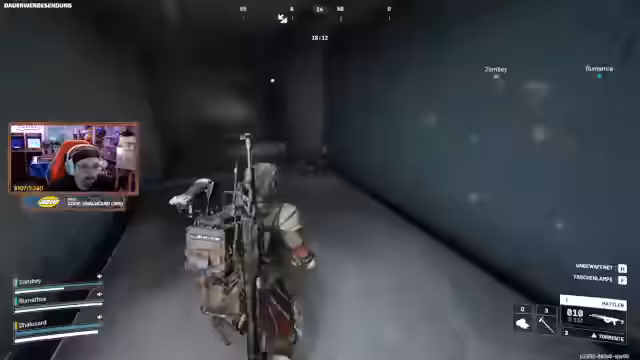 03:12:21Während eines Gefechts verliert der Streamer die Orientierung und die taktische Kontrolle. Er ruft seine Mitspieler zu, die Positionen von Gegnern zu markieren, aber er selbst ist verwirrt und wird von einer Spinne angegriffen, während er einen Gegner bekämpft. Die Situation eskaliert, als er in einen Raum rennt, ohne die taktische Lage vollständig zu erfassen. Er beschreibt die chaotische Szene und gibt zu, dass er durch die schnellen Abläufe den Überblick verloren hat und nicht mehr wusste, wo sich welche Spieler befanden.