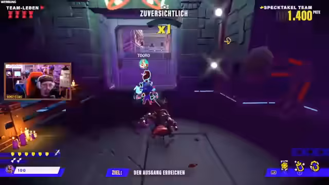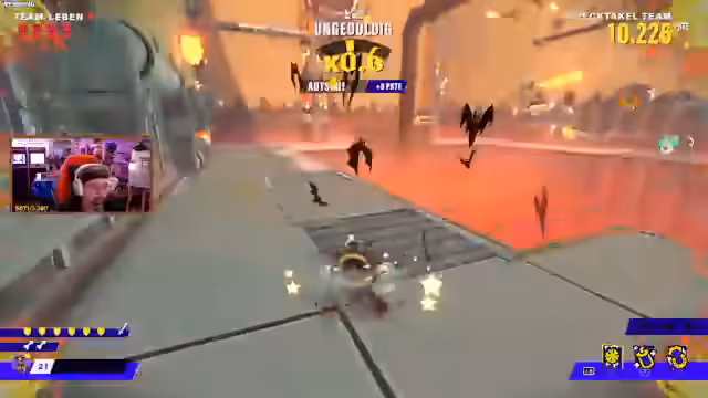 06:52:20Die Gruppe startet einen weiteren Versuch auf Pilars Map, fest entschlossen, diese zu beenden. Die Spieler konzentrieren sich darauf, die schwierigen Sprünge zu meistern und die sich bewegenden Plattformen zu umgehen. Es wird festgestellt, dass der Hammer als Waffe für bestimmte Sprünge ungeeignet ist. Die Kommunikation über das Schießen auf Knöpfe und das gemeinsame Vorankommen ist entscheidend. Ein Spieler schafft es, einen Schalter zu betätigen, der eine Tür öffnet, wodurch die anderen Spieler weiterkommen. Es wird vermutet, dass das Erscheinen von Gegnern davon abhängt, ob alle Spieler anwesend sind. Ein Bosskampf wird erfolgreich gemeistert, und die Spieler sammeln eine Batterie ein, die für das weitere Vorankommen notwendig ist. Es werden verschiedene Wege erkundet, und die Spieler heilen sich gegenseitig. Ein Rätsel mit Kristallen und Schaltern muss gelöst werden, um weitere Türen zu öffnen. Es stellt sich heraus, dass bestimmte Schalter nur mit blauen Diamanten oder spezifischen Symbolen aktiviert werden können, um Wände zu entfernen oder Plattformen zu bewegen. Nach weiteren Herausforderungen und der Lösung des Rätsels erreichen die Spieler das Ende der Map. Ein Spieler überquert die Ziellinie als Erster, was als Erfolg gefeiert wird. Die Map von Pilar wird als 'genial' und 'sehr geil' gelobt, trotz ihres hohen Schwierigkeitsgrades. Die Punkteverteilung wird angezeigt, und es wird erwähnt, dass eine Spende an den Creator der Map möglich ist. Es stehen noch weitere Community-Maps von 'Tim dem Künstler' und 'Rabi' an, darunter ein Vierspieler-Wettrennen.