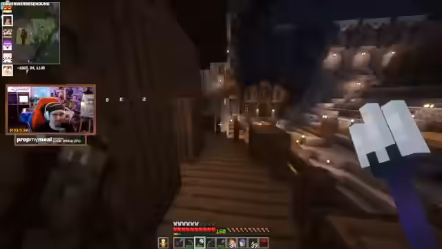 01:40:55Die Gruppe setzt ihre Erkundung in Minecraft fort und sucht nach einem „Altenheim“ zwischen Gohlem und Spark, in der Nähe des Kupfer-Gohlems. Sie entdecken ein Gebäude, das als Essbereich und Bingo-Saal dient. Besonders begeistert sind sie von einem funktionierenden Bingo-Automaten und einem Treppenlift für Peter. Ein Spieler drückt auf den Bingo-Automaten, wodurch eine neue Zahl generiert wird, was zu einer spontanen Spielrunde führt. Es wird spekuliert, ob der Streamer nach diesem Glücksfall den Stream beenden und Rubbellose kaufen wird, was die humorvolle Atmosphäre unterstreicht. Die Suche nach den Zimmern der Bewohner führt sie nach oben, wo sie auf humorvolle Weise die Zimmer verschiedenen Spielern zuordnen, basierend auf deren vermeintlicher Unordnung.