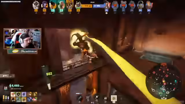 02:23:04Der Streamer befindet sich mitten im actiongeladenen Spiel Deadlock. Der Fokus liegt auf strategischen Entscheidungen, wann seine Ultimate eingesetzt werden sollte und wie er den Teamkampf gewinnen kann. Er analysiert die gegnerischen AP-Werte und bewertt Chancen, um den Mirage zu eliminieren oder den Spielvorteil durch das Holen von Crewcam zu maximieren. Dabei entstehen Momente der Verwirrung über gegnerische Positionen und Aktionen, wie Geist, der plötzlich auftaucht und die Dynamik verändert.